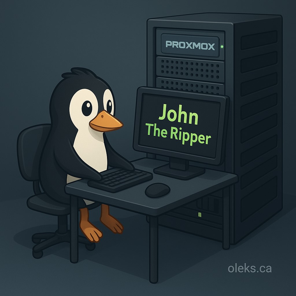 Prérequis : pour le test, j’ai utilisé Ubuntu 22.04 sur Proxmox (4 vCPU, 8 Go de RAM). Je travaillerai avec l’utilisateur oleks, qui fait partie du groupe sudo. Après le test, si la VM n’est pas dédiée uniquement à ces essais comme dans mon cas, supprimez ou effacez de façon sécurisée le fichier monpass.l, car il contient des hachages de mots de passe.