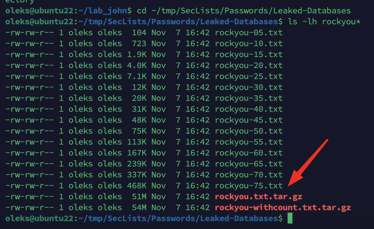 ls -lh ~/lab_john/rockyou.txt wc -l ~/lab_john/rockyou.txt