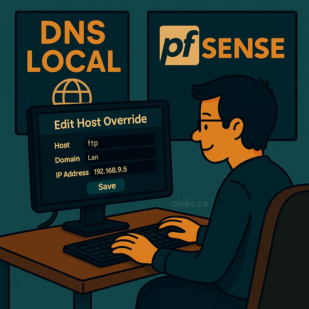 pfSense permet d’associer un nom de domaine local à une adresse IP grâce à la fonctionnalité DNS Resolver, en utilisant les Host Overrides. Ce tutoriel vous expliquera comment configurer pfSense pour que tous les appareils de votre réseau puissent accéder à ftp.lan et être automatiquement redirigés vers 192.168.0.5.