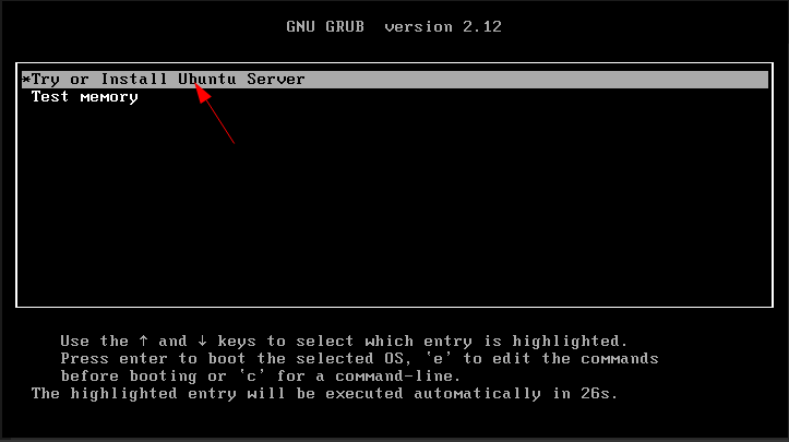 Choisissez Try or Install Ubuntu Server. Appuyer sur Enter pour continue