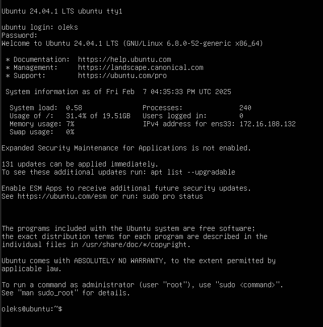 Une fois le redémarrage terminé, je me connecte à mon Ubuntu Server.