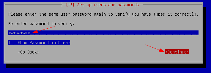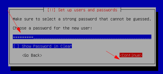 Vous pouvez également laisser ce champ vide si vous ne souhaitez pas utiliser le compte root directement. Dans ce cas, un utilisateur normal sera créé dans l’étape suivante et ajouté automatiquement au groupe sudo.