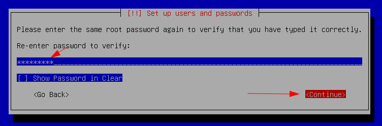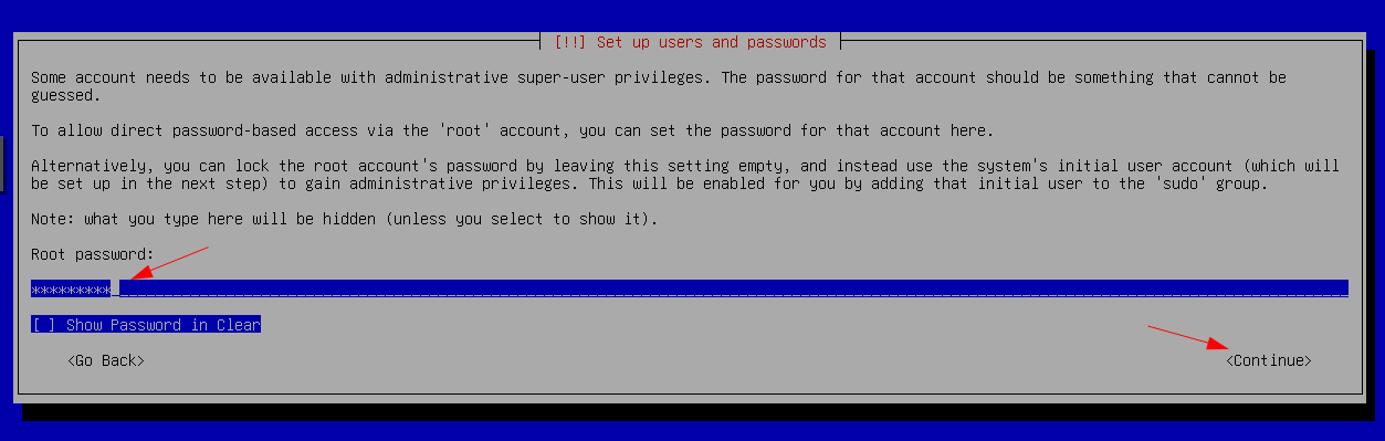 À cette étape, vous devez définir un mot de passe pour le compte root.
