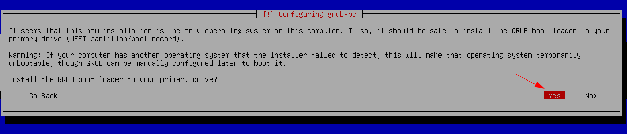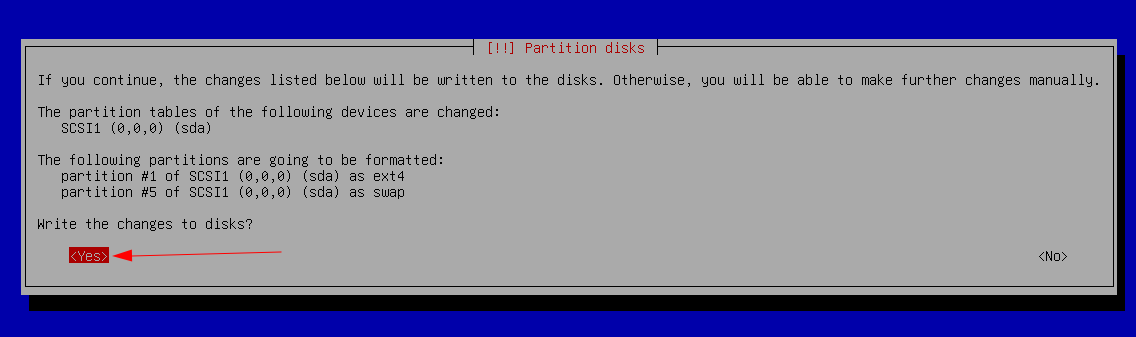 Utilisez Tab pour sélectionner « Yes » puis validez avec Entrée.