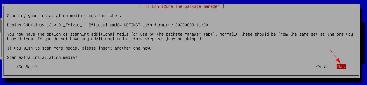 Il propose de scanner un autre média d’installation (par exemple, un second CD).