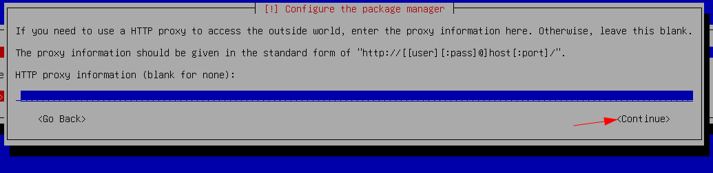 Laissez ce champ vide si vous n’utilisez pas de proxy, puis appuyez sur Entrée pour continuer.
