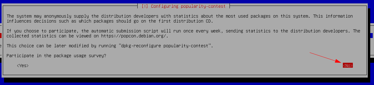 Choisissez Non pour ne pas envoyer de statistiques anonymes sur l’utilisation des paquets, puis appuyez sur Entrée.