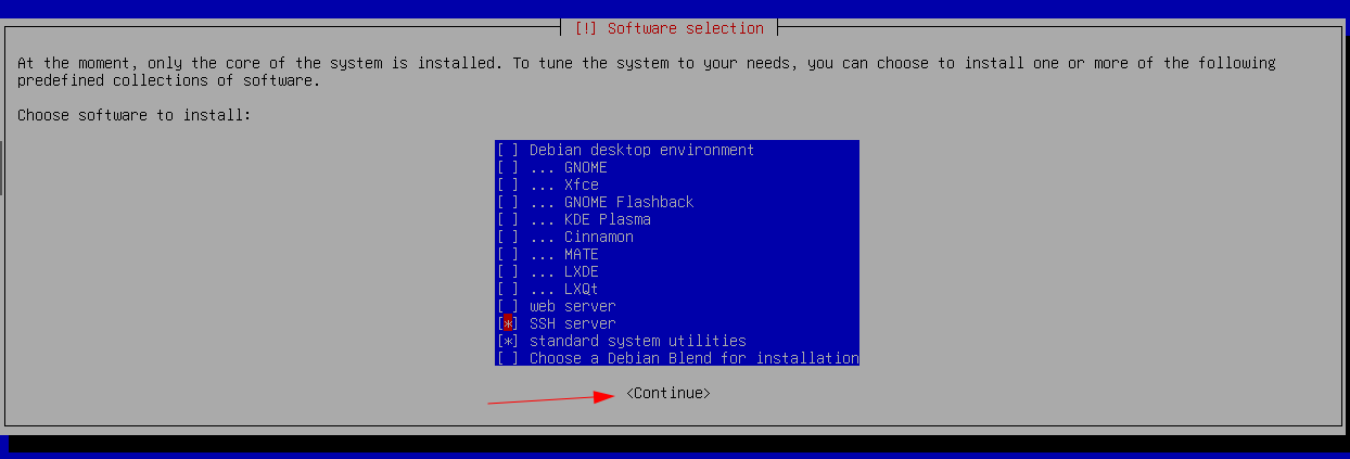 Utilisez Tab pour sélectionner Continue, puis appuyez sur Entré