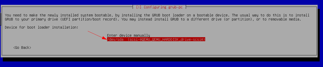Sélection du périphérique pour l’installation du chargeur GRUB
