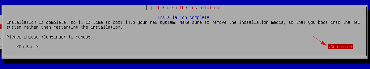 Utilisez Tab pour sélectionner Continue, puis appuyez sur Entrée.
