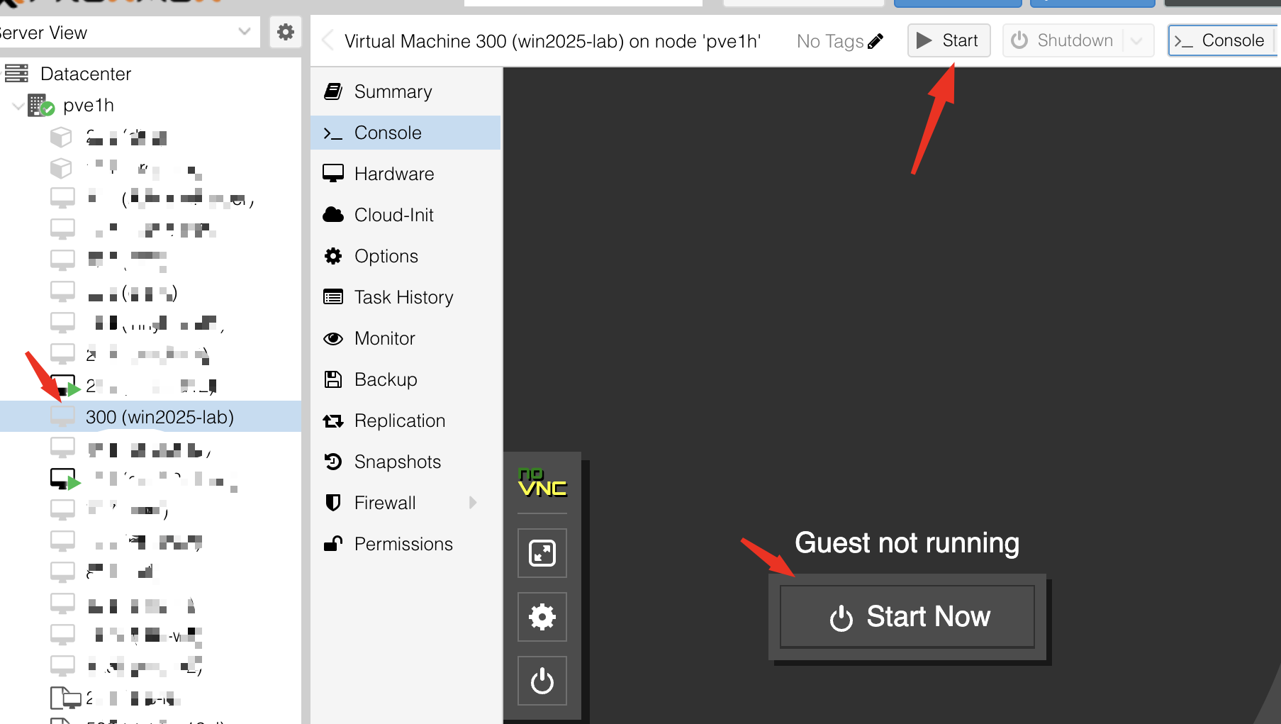 Sélectionnez la VM, cliquez sur Start, puis sur Console.