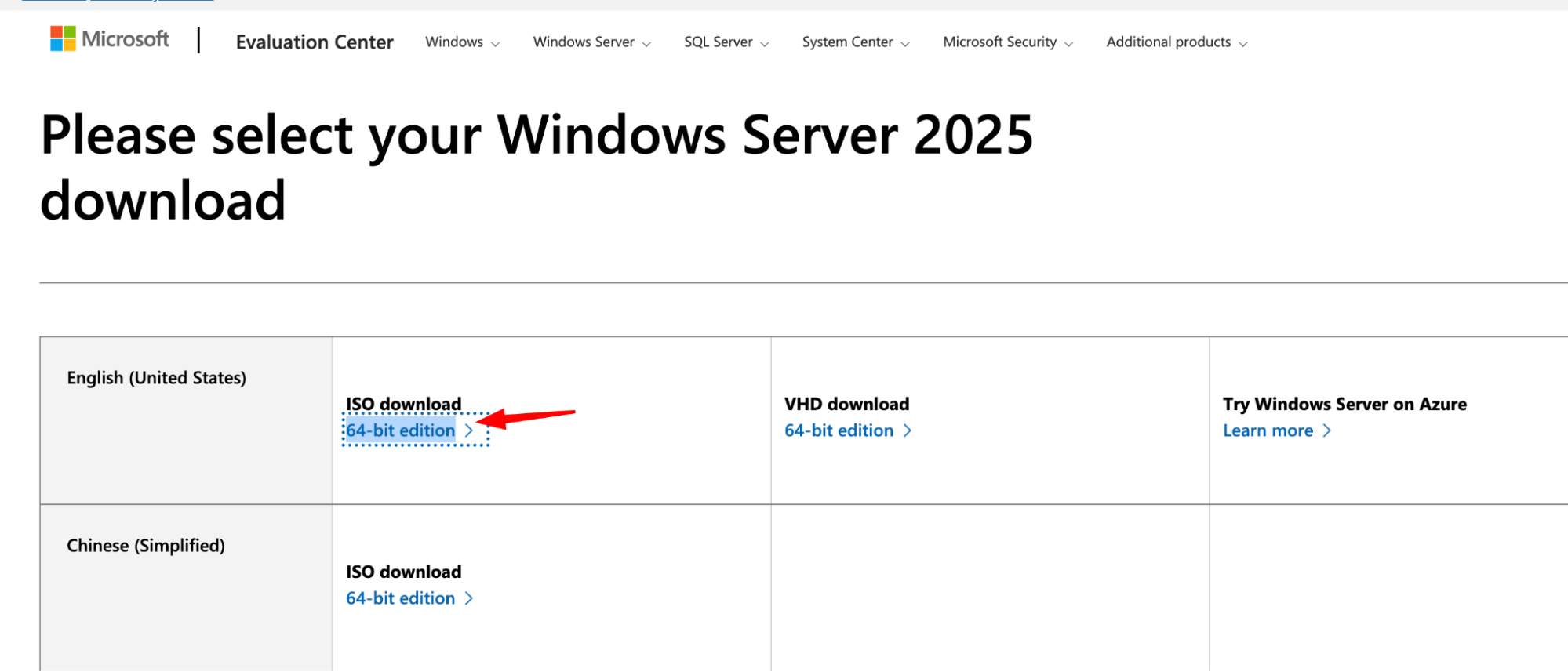 Téléchargez l’image Windows Server 2025 depuis Microsoft, puis transférez-la dans Proxmox.