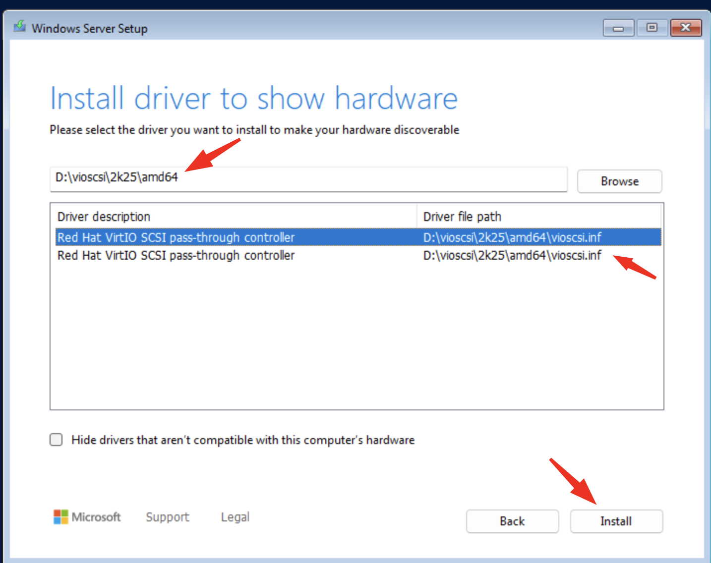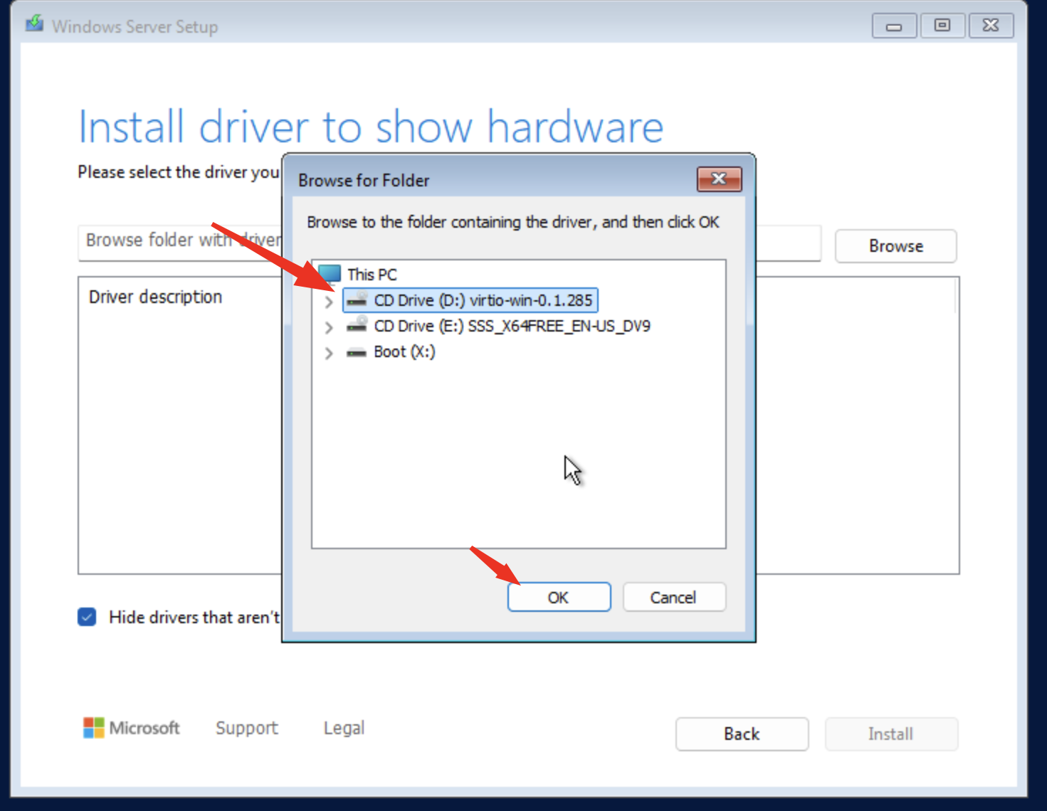 Sélectionnez l’ISO VirtIO (en général lecteur D:).