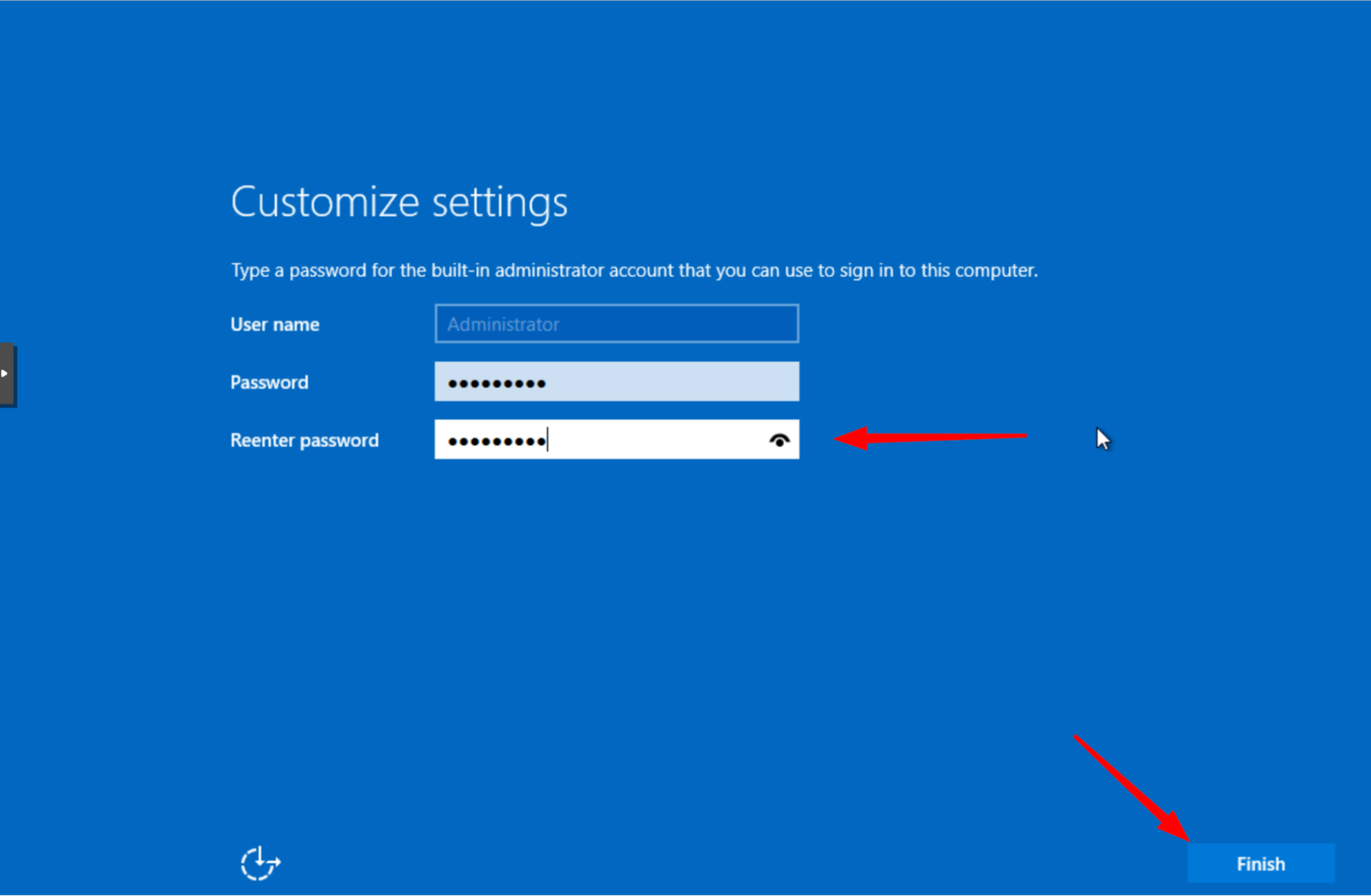 Après le redémarrage, définissez le mot de passe pour le compte Administrator.