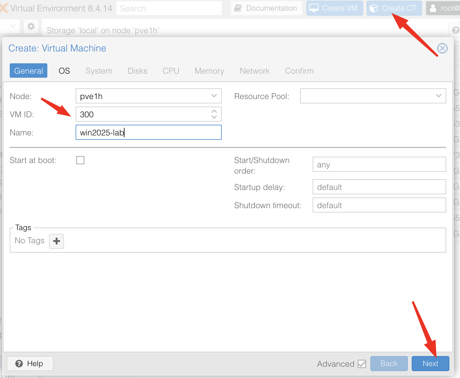Attribuez un ID et un nom (ex. : win2025-lab). Cliquez sur Next.
