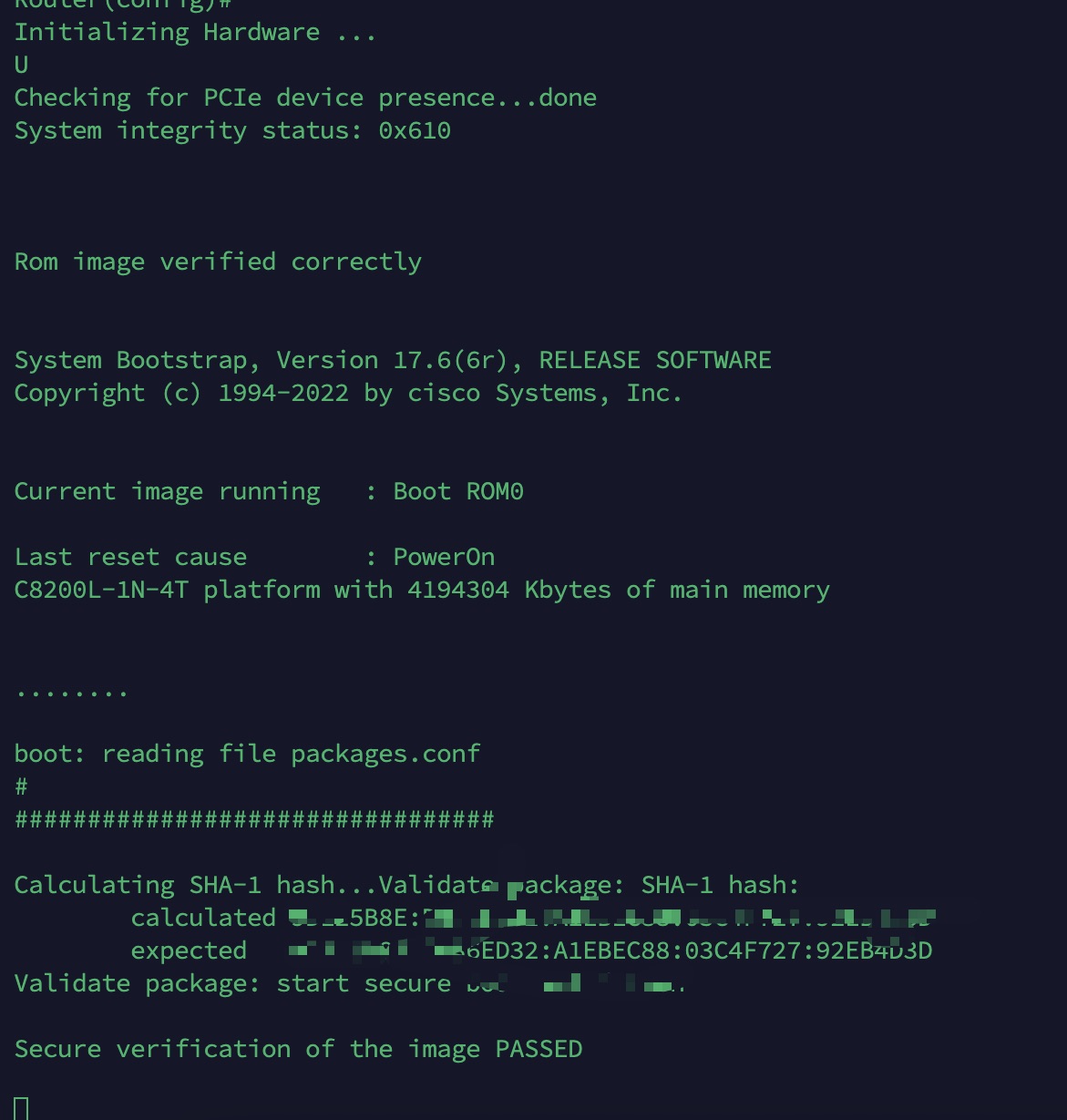 boot: reading file c8000be-mono-universalk9.17.12.02.SPA.pkg Secure verification of the image PASSED