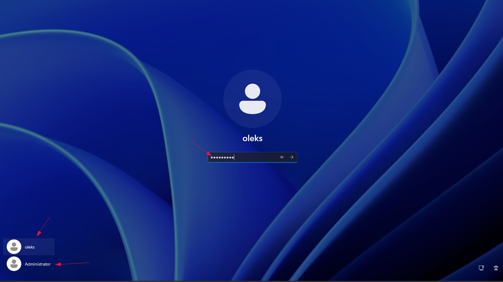 Après le redémarrage, vous pouvez vous connecter soit avec le compte que vous avez créé (dans mon cas oleks), soit avec le compte intégré Administrator.